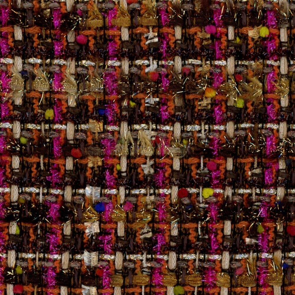 VX6774 – Metallic Brown Pink and Multi Pom Pom Fabric